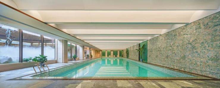 会所作为社区的灵魂所在,山水颐萃别院打造了银湖板块独一无二的双泳池体系。一座是约260㎡的室内恒温泳池,无论寒冬酷暑,水温始终维持在适宜区间,让游泳成为一种不受季节打扰的日常坚持,配套的独立淋浴区与消毒池确保了环境的洁净与尊属感。