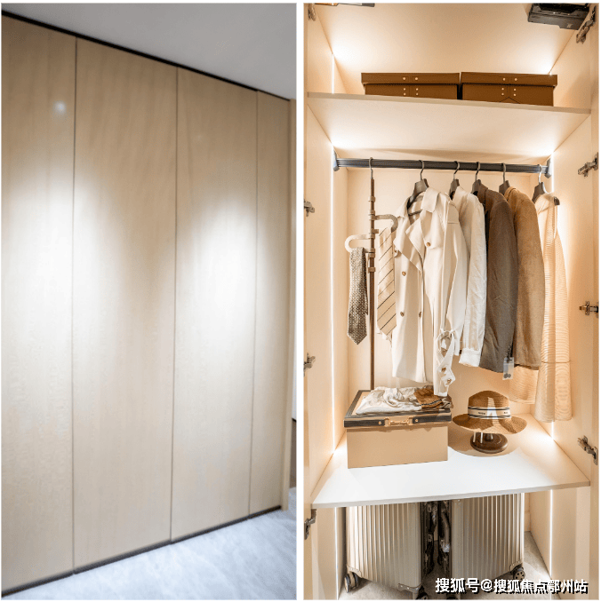 最令人惊艳的,莫过于项目将原本易被忽略的过道转化为实用收纳区—— 打造了少有的“过道柜”,无论日常衣物、换季的厚被子,还是不常用的生活物件,都能在此找到规整安放的位置。