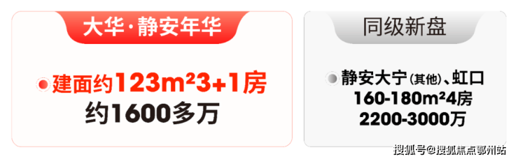 4房同样如此,市面同类产品普遍建面160-180㎡,总价2200万起步;大华·静安年华123㎡“3+1”房,总价1600多万,既满足大家庭“一步到位”的需求,又大幅降低了改善成本。