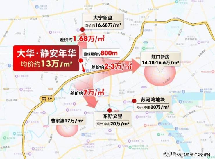 放眼整个静安区,曹家渡17万/㎡,东斯文里和苏河湾项目预计冲击20万/㎡,和大华·静安年华高层差价预计近7万/㎡。