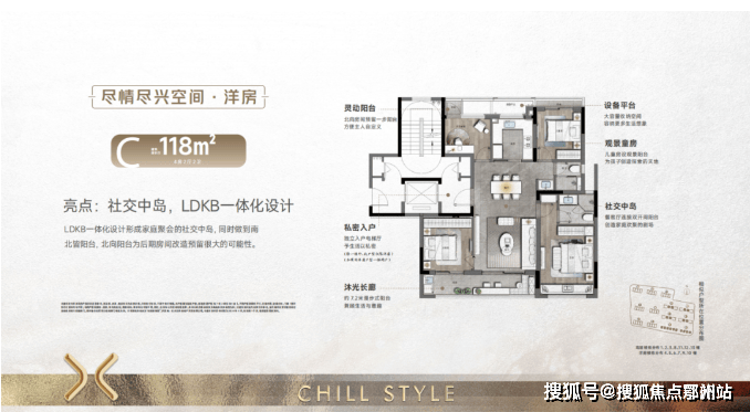 建面约114㎡在有限的空间创造出四房的无限可能,将总价拉低同时,更为餐客边厅设计180°观景视野,以及为二孩家庭定制的连体儿童房,将精致的实用主义贯彻到底。