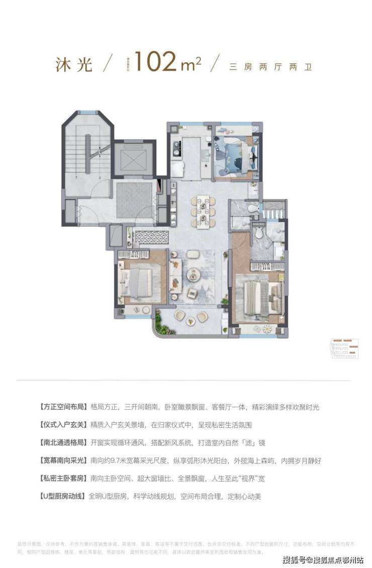 - 小高层:南北通透三开间朝南,主卧套卫设计,99㎡的空间却能实现传统95㎡无法比拟的舒适度,真正做到了小面积大享受!