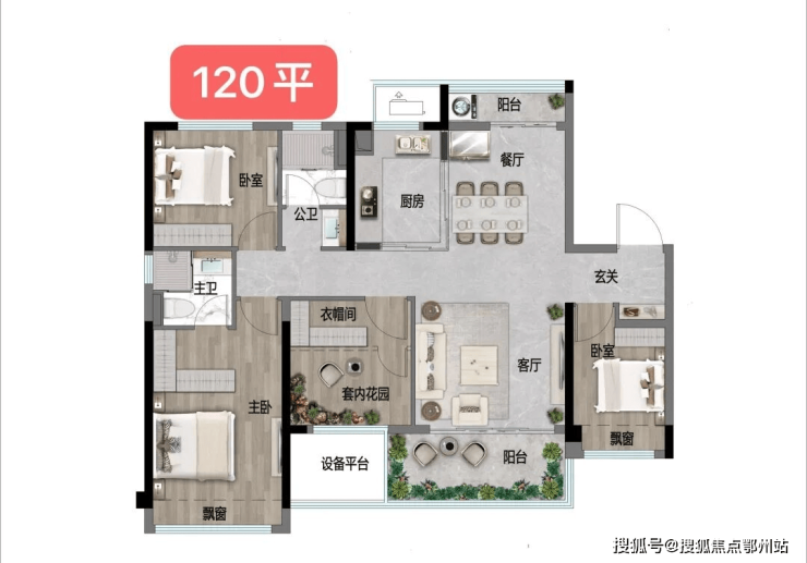 建面约120㎡户型 ,适合预算更充足的首置人群。