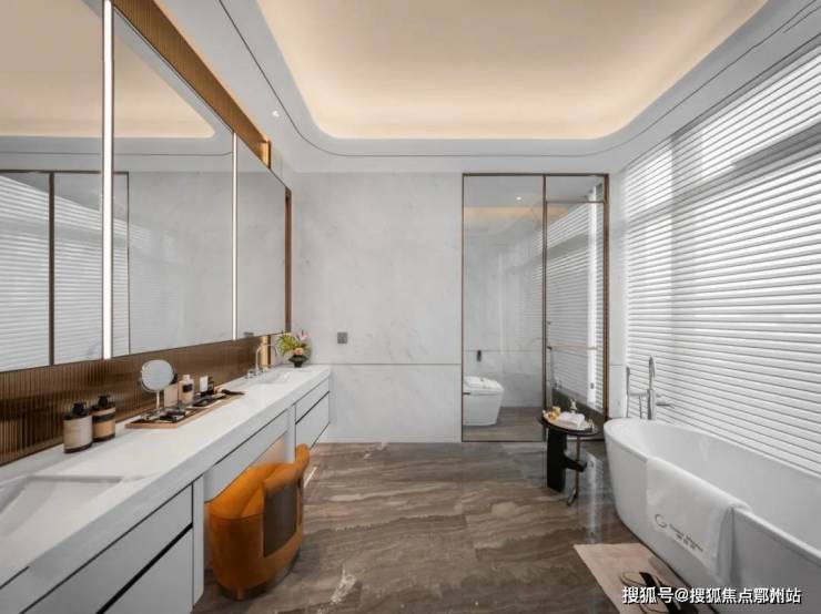 主卫选用 劳芬、当代、卡德维等顶配装标,在2万+大平层中找不到第二个。并且御钱湾并不是为了堆配置,都是从健康出发,当代的黄铜龙头十年不锈,卡德维浴缸的抗菌釉面,不会发黄,是婴儿水中分娩浴缸。