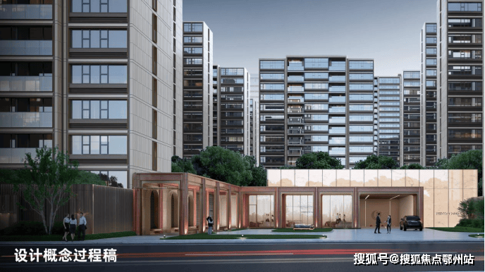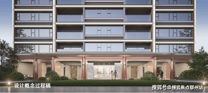 建筑立面上, 沁蘭园采用了Bezel-less超纤细金属边框设计,宛若一幅幅精美的油画框。整个立面竖向还采用了“超平垂直”的设计理念,立面材质上运用 大量玻璃+香槟金金属线条。