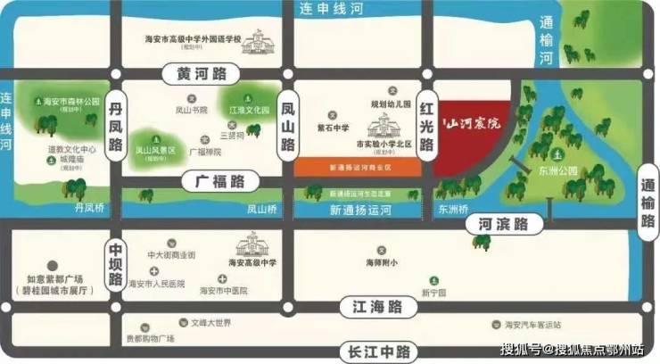 产品推介:项目毗邻新通扬河生态长廊,两公里范围内有 海安实验小学、紫石中学、海安高级中学等教育资源