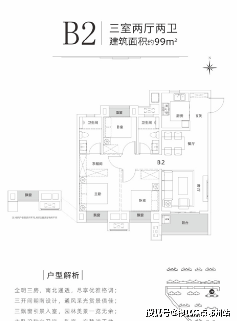 ② B2户型 99㎡、3室2厅2卫