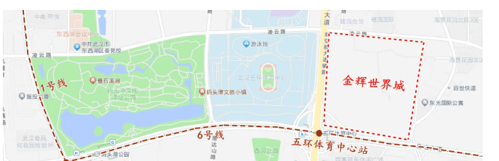 金辉世界城位于临空港大道与金山大道交汇处,楼市划分属于临空港新城板块,行政划分属于东西湖区,距离三环线约3公里,属于三环外。