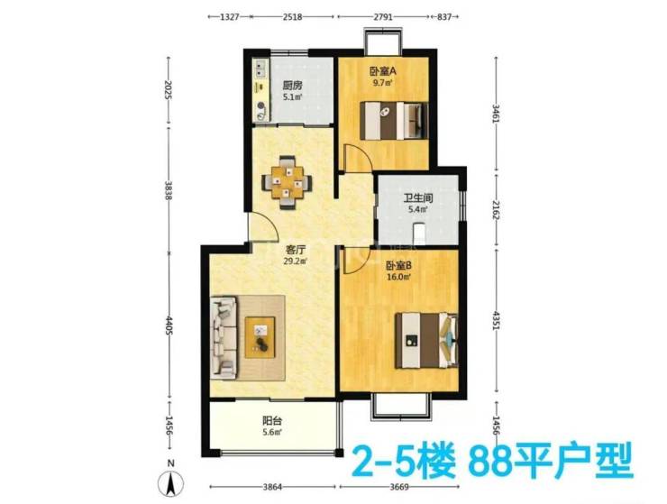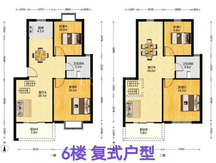 【房源面积】88㎡两房,155㎡复式四/五房