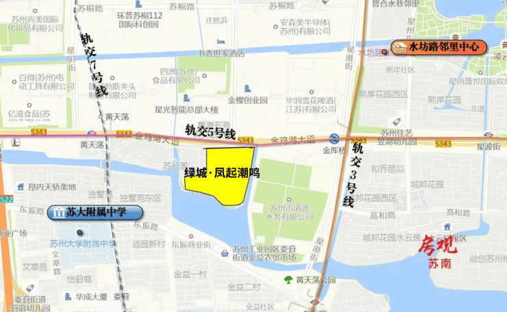 周边3、5、7号线三轨交汇,3站即达苏州中心,北侧紧邻金鸡湖大道,往西直通古城、往东直达湖东。