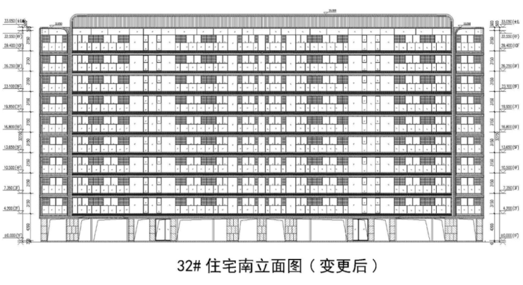洋房南立面图:非常流畅的造型,首层高4.2米,多楼栋设置架空设计,其余层高3.15米