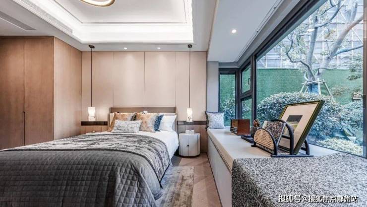 主卧套间设计,配备步入式衣帽间、独立卫浴, 卧室、书房都带有景观飘窗,在室内就可感受暖阳入室、清风徐来,室外美景也尽收眼底。