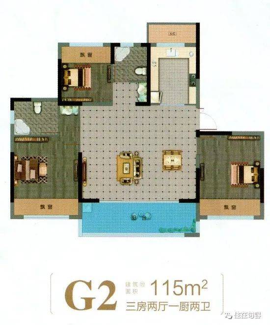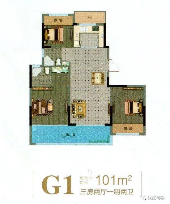 房企考虑到改善家庭多,最小面积由最初的96㎡改为101㎡,三房两厅两卫。