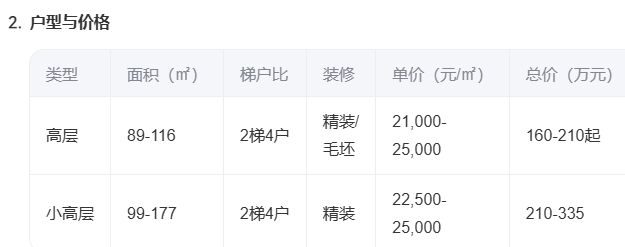 精装/毛坯高层(22-23层)、精装小高层(17-18层)