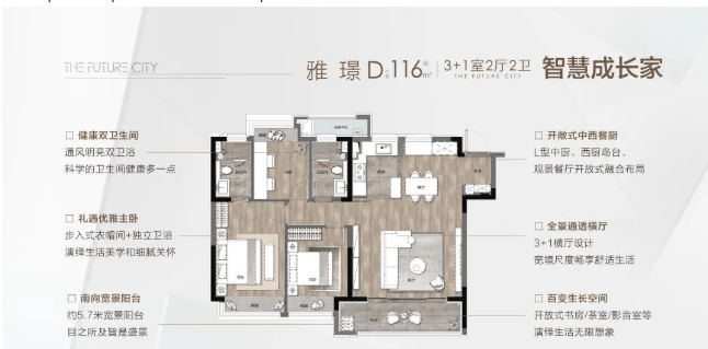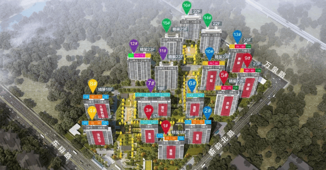 宋式园林布局,楼间距最大175米,配备双泳池、全龄架空层及900米夜光跑道