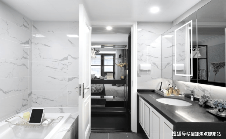 朗斯淋浴房,防水贴条、导水条;防滑地砖;松下浴霸;科勒浴缸;樱花镜柜,270°镜面;汉斯格雅花洒;智能马桶;卫生间门隔音胶条。