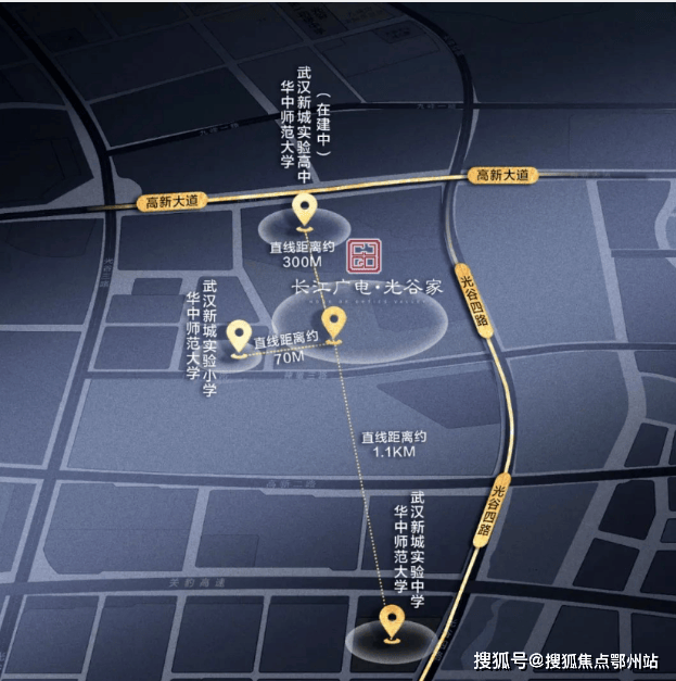 西边是小学、南面是初中、北面就是高中,长江广电光谷家简直是被华师系小学、初中、高中包围,且距离非常近!