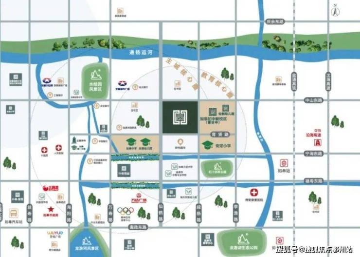 项目鼎立如皋城心,南至育贤路,西临仙鹤路,东抵绿杨路,北通中山路,直达市中心, 靠近如皋站,城内外四通八达。