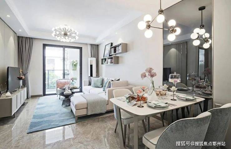 在餐客厅的布局上,采用一体化的贯通设计,提高会客、就餐空间的伸缩性,在更加敞阔的双厅空间里,
