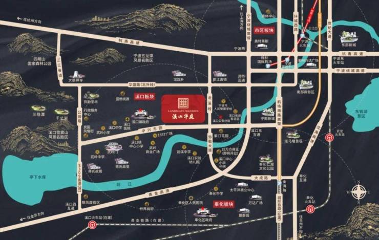 交通四通八达:占据溪口核心位置,未来溪口重点居住区。公交站,客运中心,高速口尽在咫尺。15分钟到底奉化城芯,40分钟到达鄞州中心/东部新城。溪口规划甬金高铁,10分钟即可到达未来的溪口火车站。溪口到栎社机场的K1线规划中。