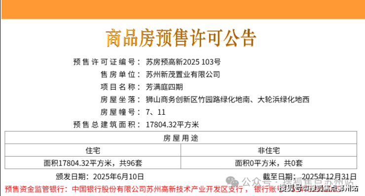 2025年6月10日第四批房源领证,共96套,位于7、11号楼,货值9.58亿。