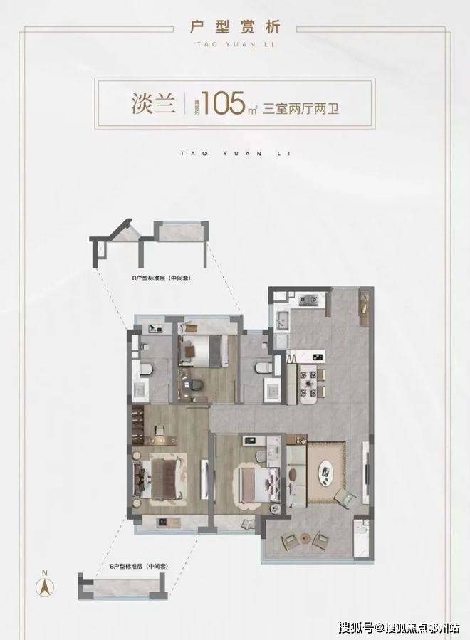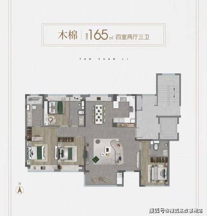 主力户型建面约105㎡3房、165㎡4房