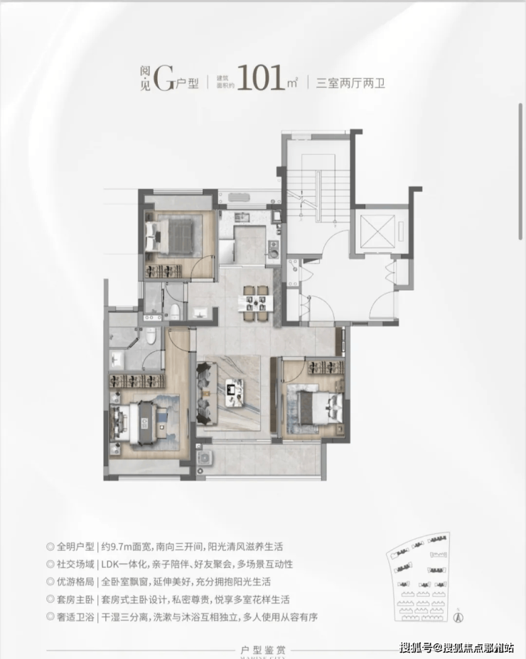 全明户型| 约9.7m面宽,南向三开间,阳光清风滋养生活