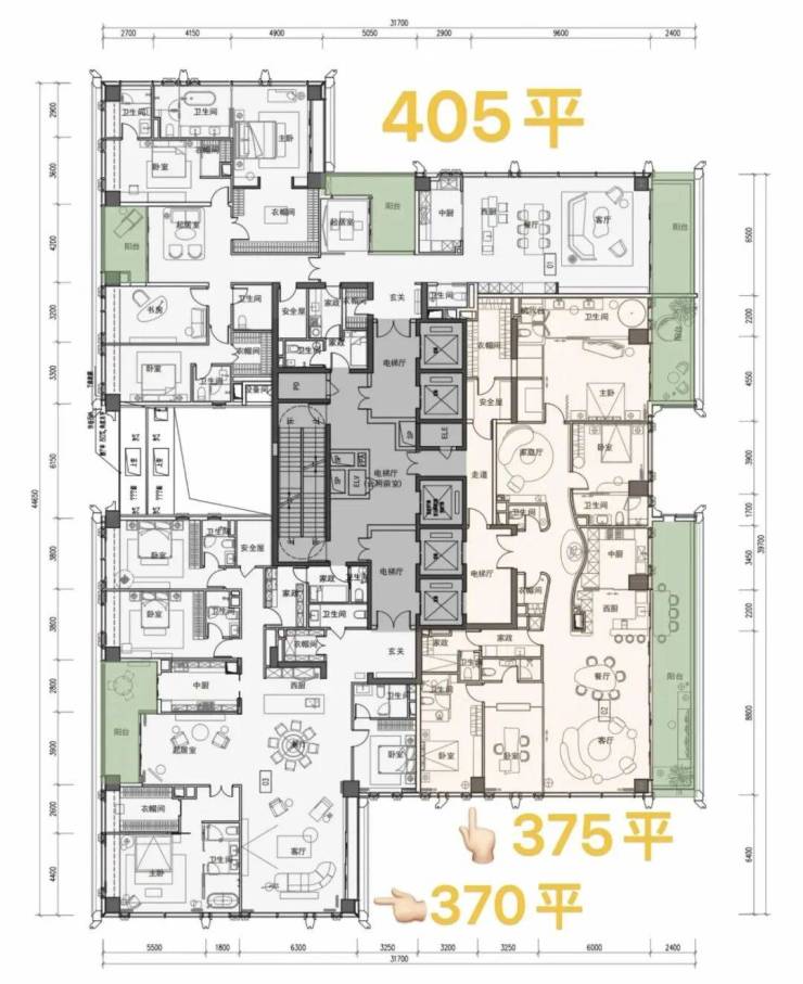 大平层设计(1149㎡): 项目最大户型面积达1149㎡,采用大平层设计理念,满足高端改善需求。