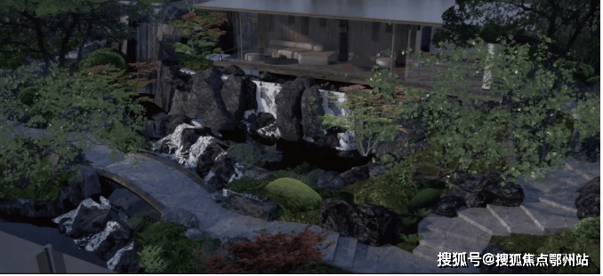 园林设计:“三轴六心五园”布局,下沉式庭院+架空层泛会所