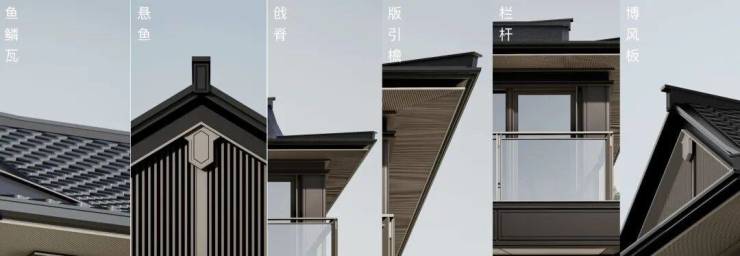 轻盈的金属鱼鳞瓦阵列,在当代工艺下精准复刻宋式歇山顶的优雅轮廓;铝板、石材与超白玻构成的通透立面,延展出极致的空间感;精心设计的博风板与悬鱼构件,于山墙顶端勾勒出简约的宋代符号;纤细的金属栏杆则巧妙呼应着宋画中常见的凭栏意象;而在屋宇转折处,经过抽象提炼的戗脊线条,利落地划破天际......