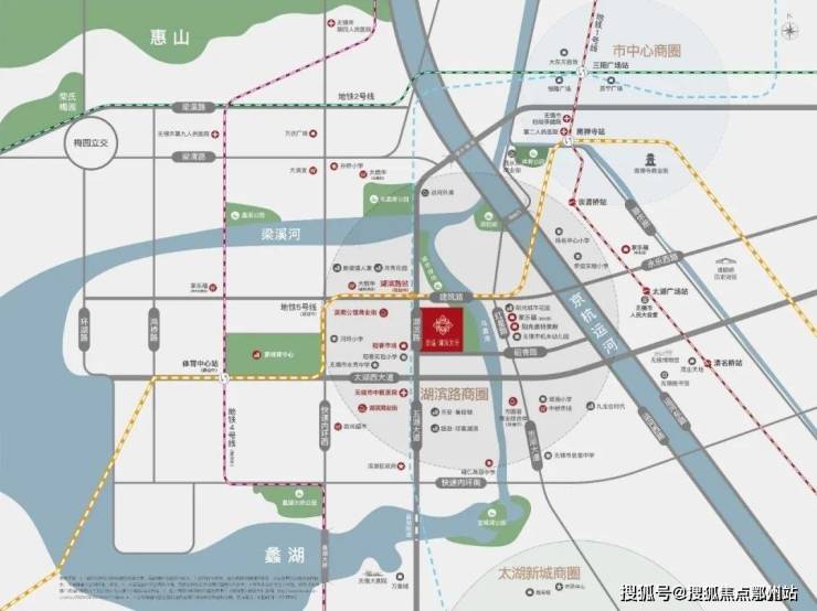 以湖滨路、稻香路、骂蠡港为边界,正好形成一个 “金三角”地段。景瑞·湖滨天誉正坐落其中。