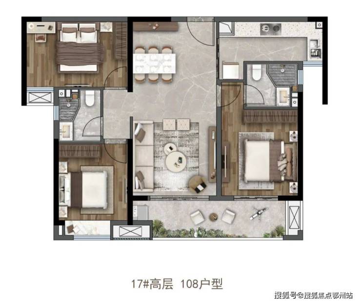 主卧套间带独立卫浴,三个卧室都不小,少见的刚需阔景户型。