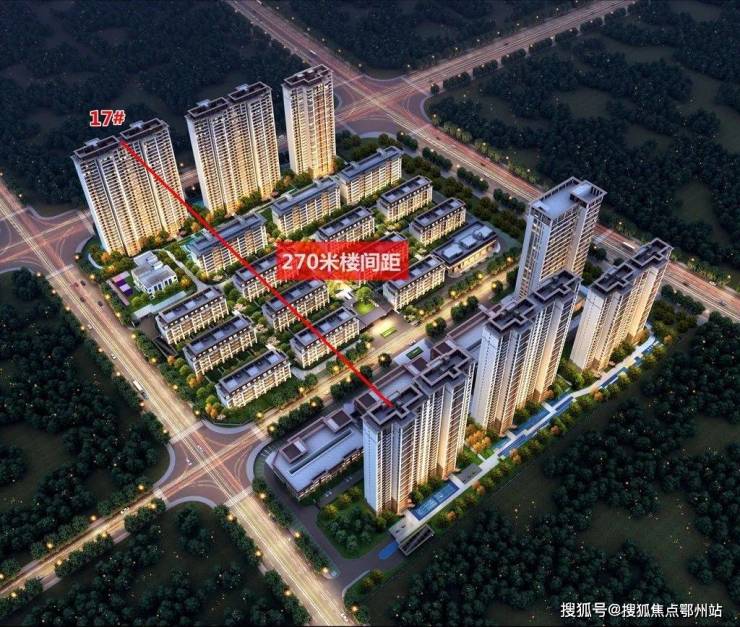 这种排布有很多优势。 首先是南北高层之间楼间距达约270米 ,通风、采光、视野景观都无遮挡,长沙少有。