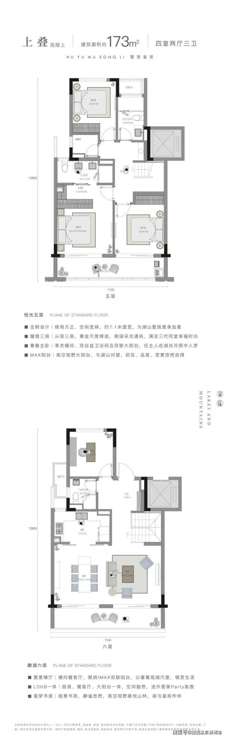 再来看西房湖语牧松的下叠户型图: