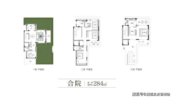 【户型面积】排屋:建面约217㎡-299㎡;合院:建面约284㎡;叠墅:建面约198㎡-209㎡