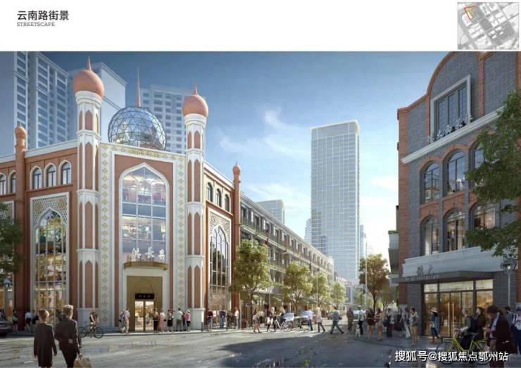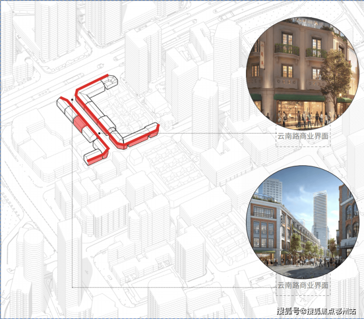 沿云南路是“大聚场”的延伸,将设置连续的商业界面,保留云南路美食街的传统特色。