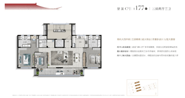 宽幕平层:建面约177㎡,阔绰空间尽显通透