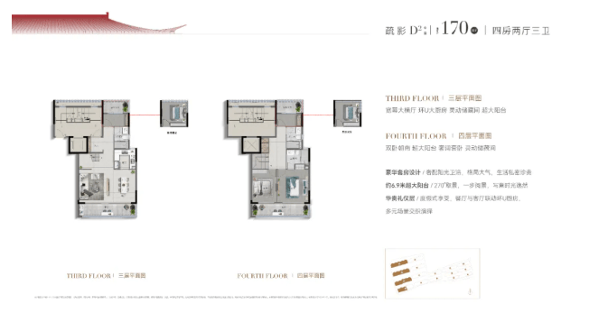 中叠(建面约170㎡):双露台+阔厅,瞰景无遮挡