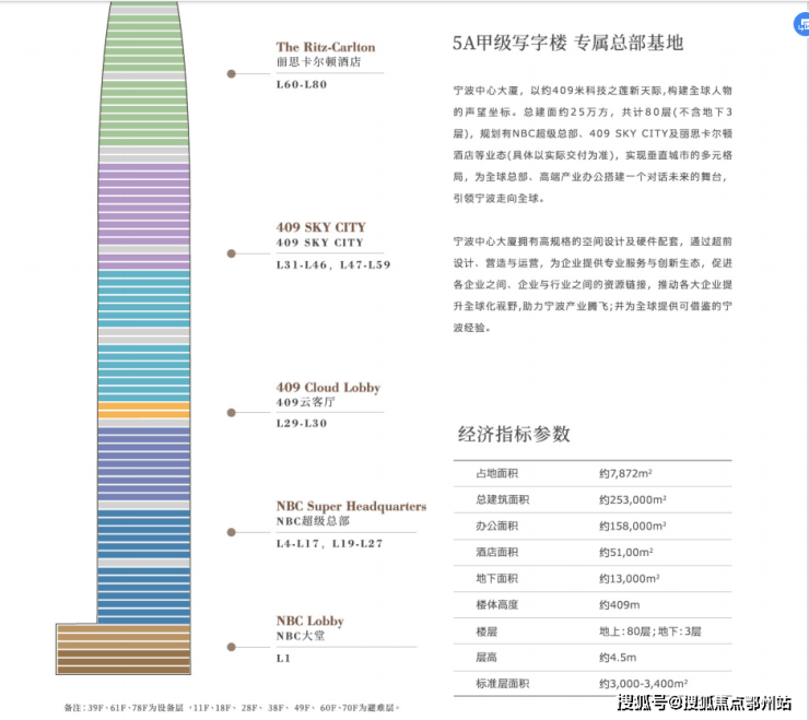 高度:409米(浙江第一高楼),地下3层+地上80层