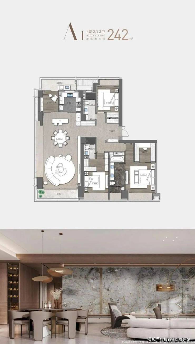 建面约242㎡4房2厅3卫