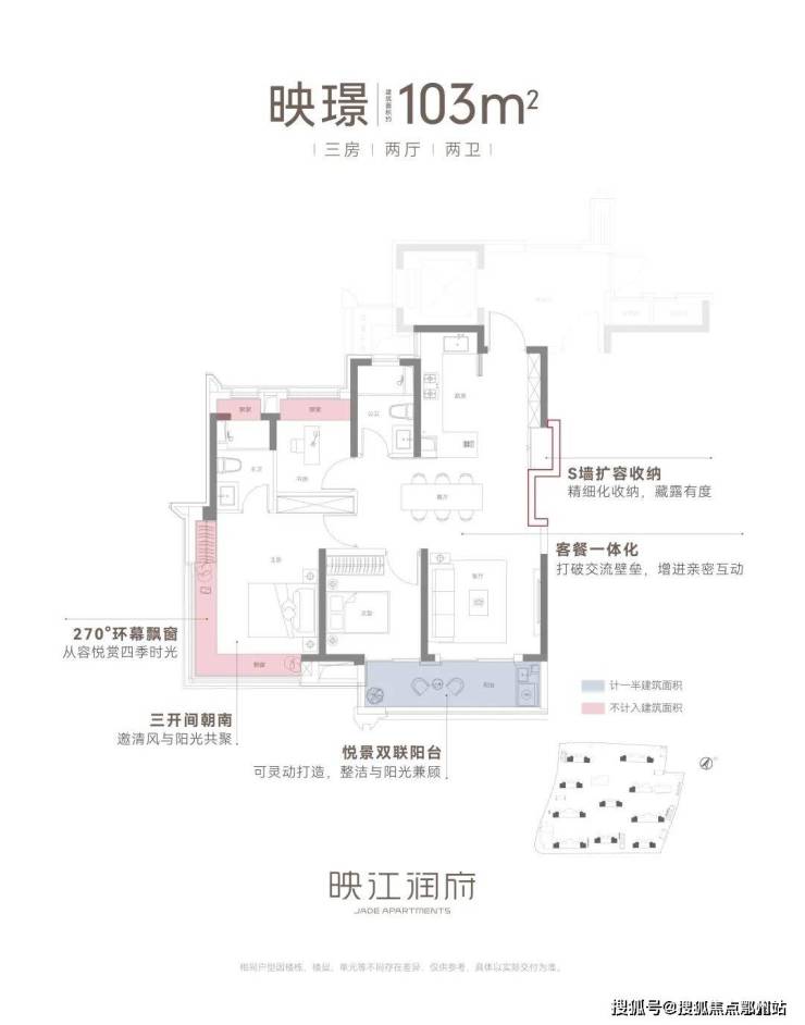 ②建面约103㎡3房2卫边套:品质改善的爆款户型,270°环幕飘窗!