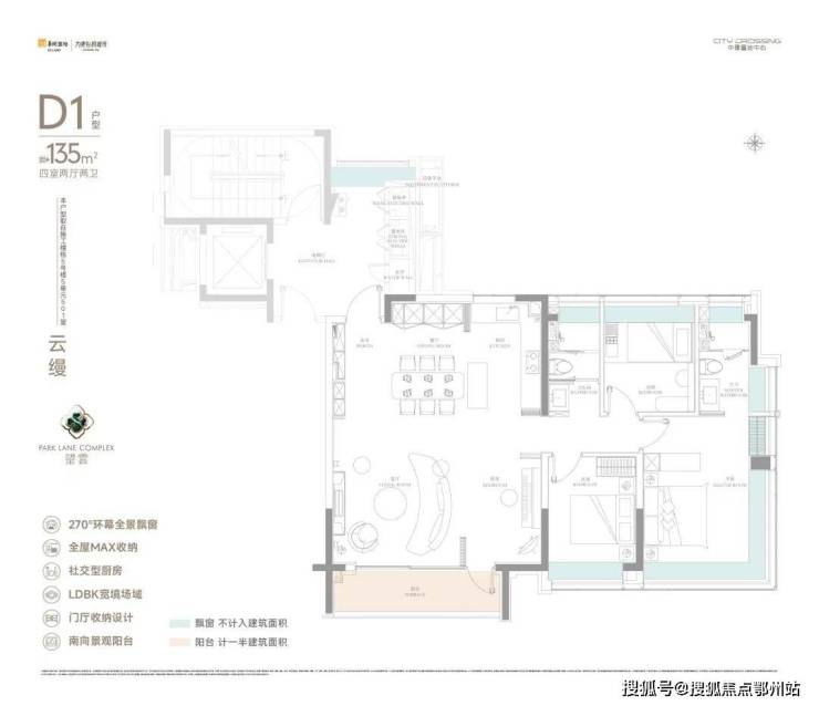 值得一提的是,建面约135㎡户型的实际使用率相当可观,据相关机构测算使用率高达约91%!