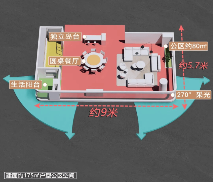 丨建面约175㎡户型公区示意,