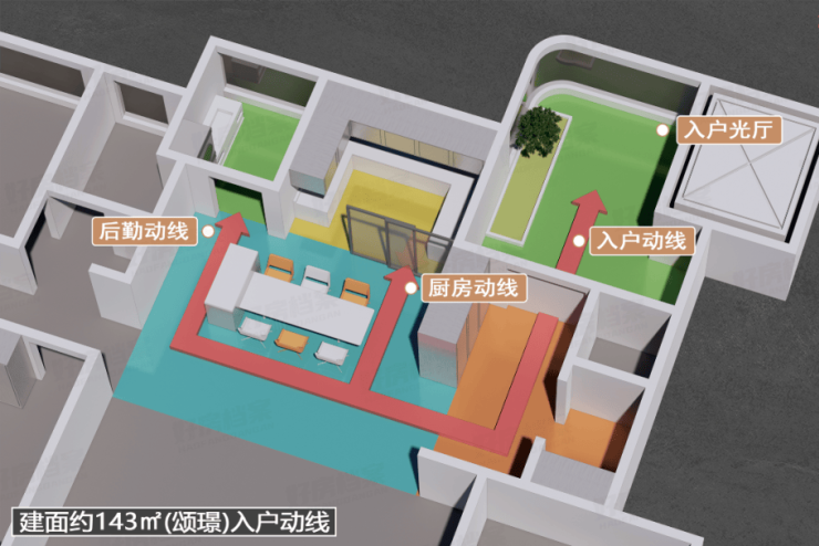 丨建面约143㎡中间户示入户系统示意