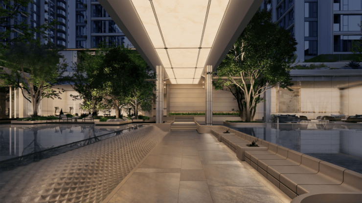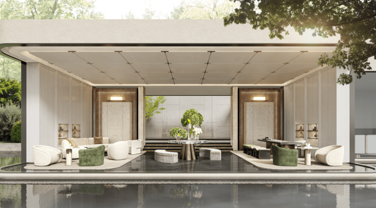 更关键的是“室内+室外”的联动——会所与社区景观、公共空间无缝衔接,形成一整套的立体生活网络。