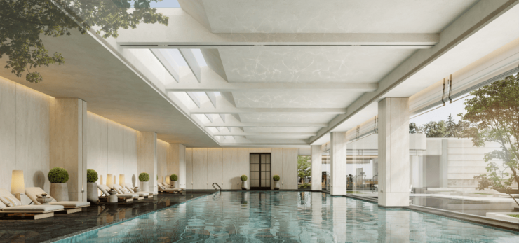 甚至泳池不止外接景观,天花板还采用透光设计,阳光的照射角度都经过仔细研判,细节多到爆炸。