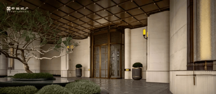 近距离看,项目的入口细节之处又不失奢华,尤其是大量名贵石材 (安哥拉黑石材)的运用绝对是大手笔,椭圆形水池搭配波光粼粼的水景,这里还种植了一株约7米高的铁冬青, 宛如翡翠屏风,豪门大院的气质扑面而来。