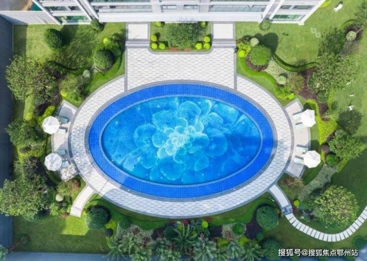 再搭配上滨江标识性的蓝宝石水系,蔚蓝的水面,从空中俯瞰,宛如一颗蓝宝石。