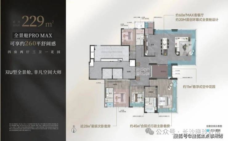 【建面约229㎡全景舱户型图】建面约229㎡可享260㎡空间感