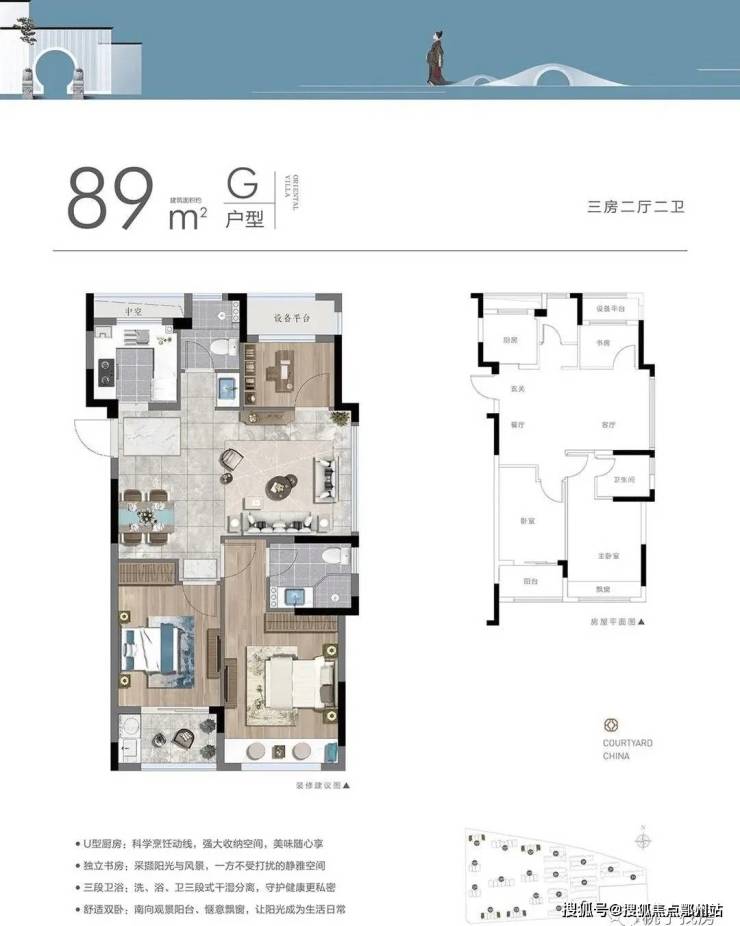 一脉锦溪繁华,以1.8的低容积率,匠制建筑面积约72-201㎡的中式合院墅区。